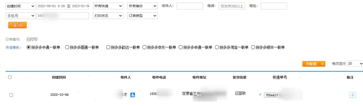 快递收货地址等信息查询